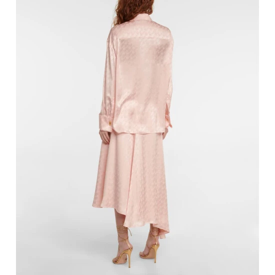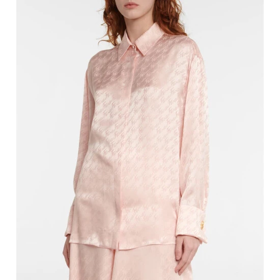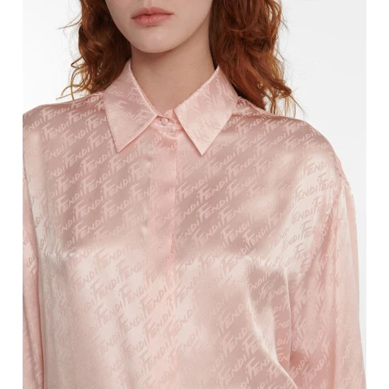 The Fendi Brush motif is a tribute to fashion illustrator Antonio Lopez, who drew the logo script by hand in the ’80s. This elegant blouse is made from fluid silk satin that showcases the lettering in a jacquard motif.
