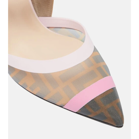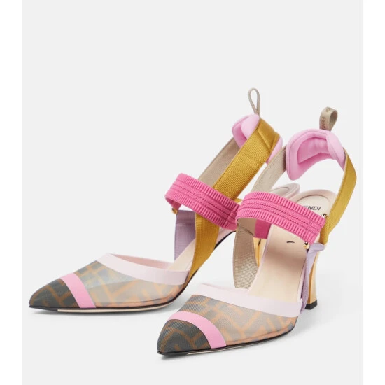 Fendi’s Colibri pumps have become a mainstay of the house’s core footwear styles. This multicolored iteration comes with the FF Vertigo motif printed in mesh, along with comfortably padded slingback straps and gold-toned metal heels.