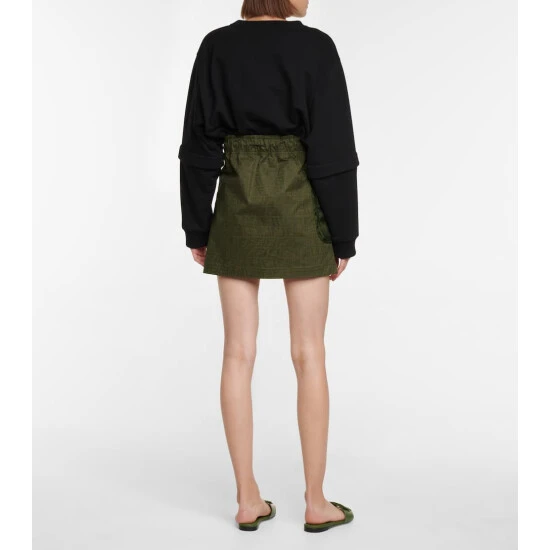 Embrace utilitarian-flavored styling with this cargo miniskirt from Fendi. Made from khaki-green denim accented with a blown-out iteration of the label’s FF monogram print, it’s framed with a nylon patch pocket and shoelace-informed drawstring ties. Take yours on hiking trips and city errands alike.