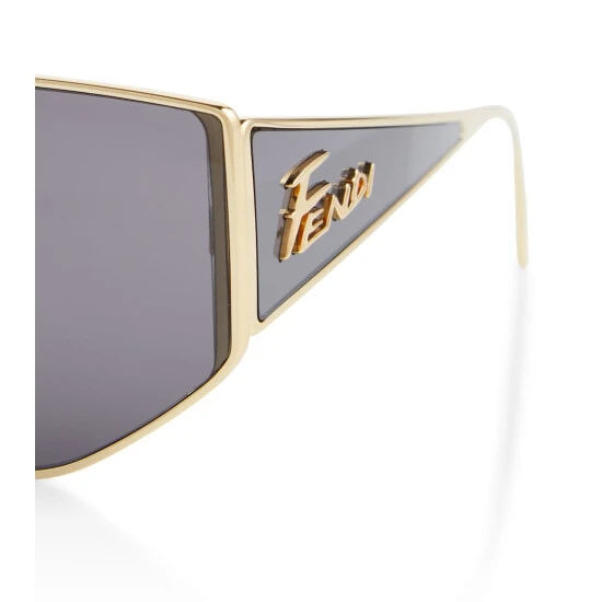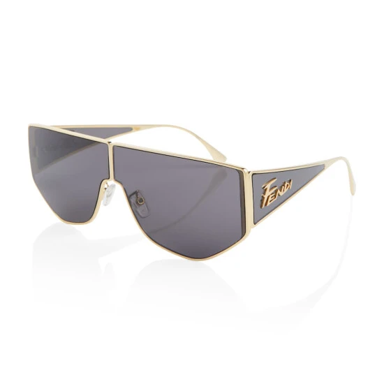The Disco sunglasses from Fendi are distinguished by their geometric lenses and Fendi Brush logo detail at the temples. The browline design is complete with gold-tone trims and tinted lenses.
