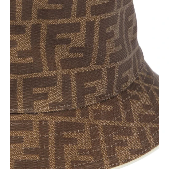 A strong signature, Fendi’s brown FF logo was designed by Karl Lagerfeld in 1965 and used on a jacquard fabric that lined the house’s travel trunks. When you wear this bucket hat, you’re wearing a piece of fashion history.
