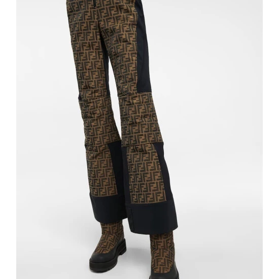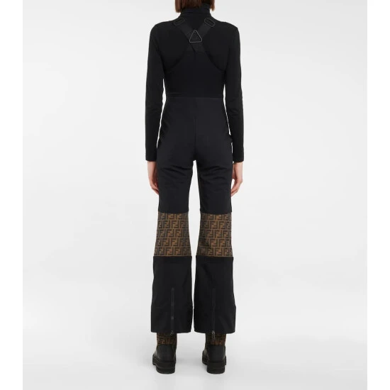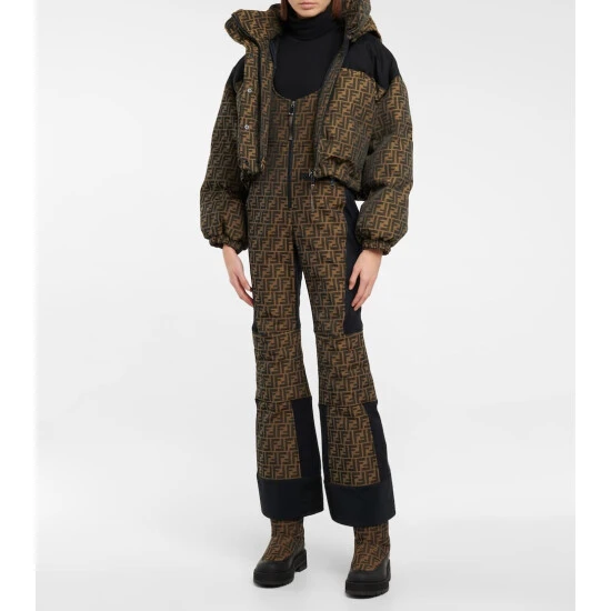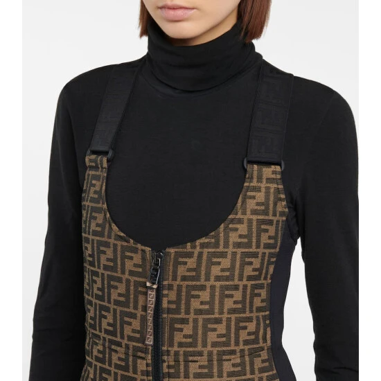 Take to the slopes year upon year with these striking brown canvas ski overalls from Fendi. They’re saturated in FF logo detailing for unmissable attention, while a zipped bib, flared snow skirt legs and wide crossover shoulder straps don’t scrimp on practicality. Note the waist pocket for easy access to the essentials, or a ski pass.