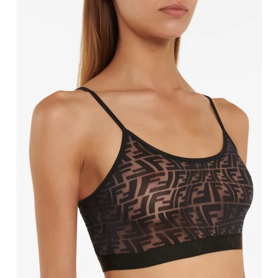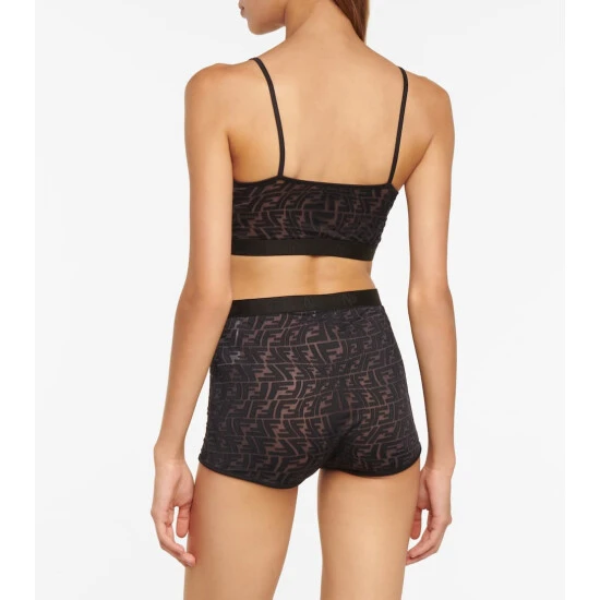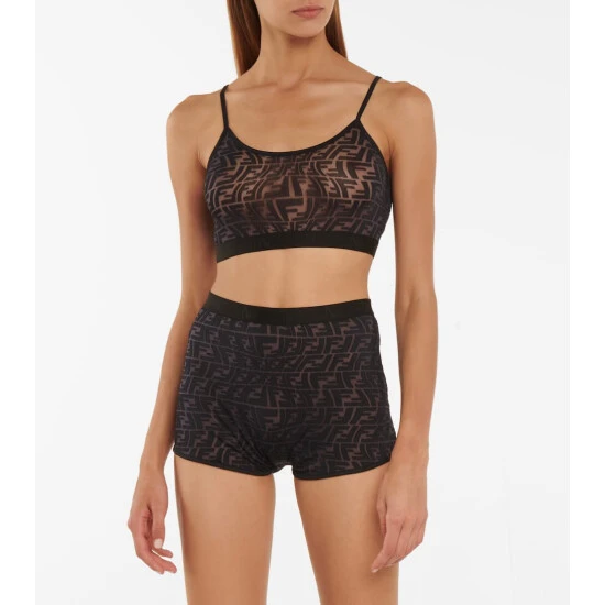 Start looks on a confident note with this black lingerie set from Fendi. Made in Italy from swirling FF jacquard with stretch blended in for added comfort, this duo comprises a sleek, sportswear-inspired bra and coordinating high-rise bottoms.