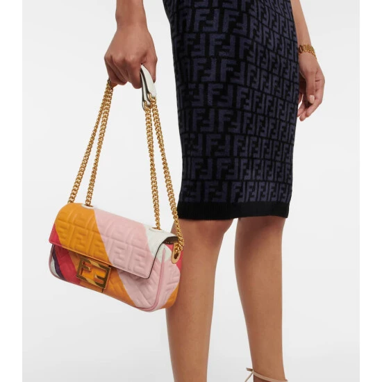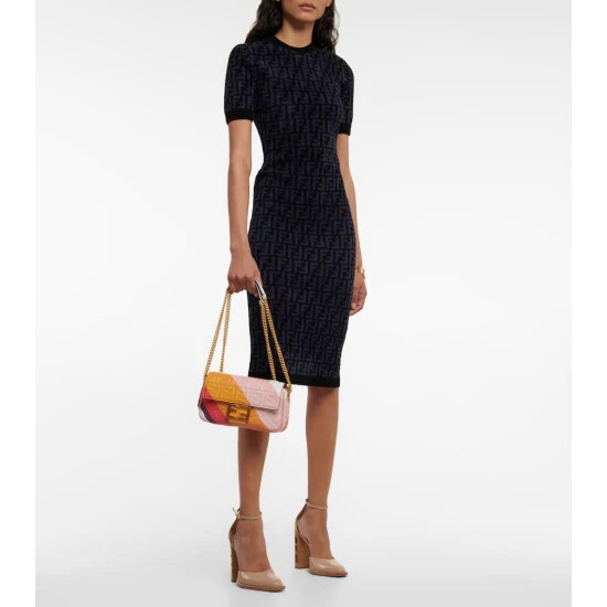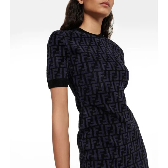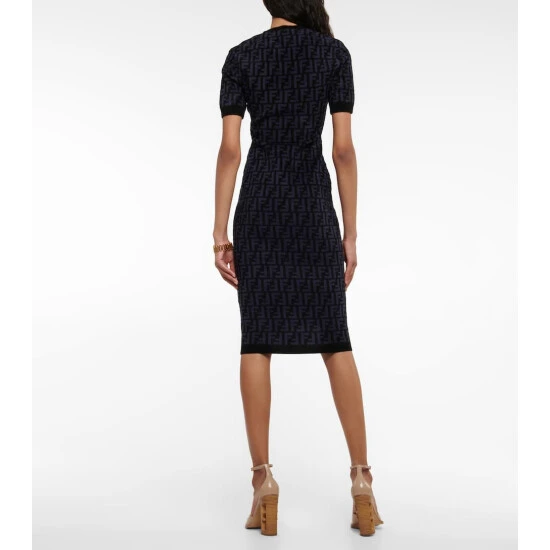 This Fendi dress is made from a compact FF jacquard knit and features a clean, form-fitting silhouette with short sleeves, a crewneck, and a midi skirt.