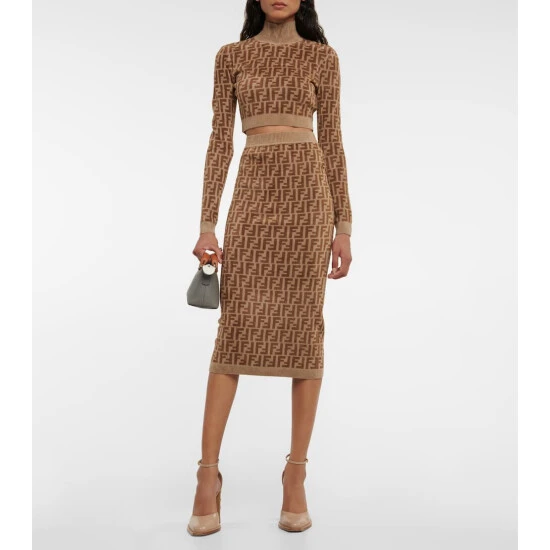 Your cold-weather closet will welcome the plush texture of this midi skirt from Fendi. It’s made from a beige knit that incorporates the house’s iconic FF monogram.