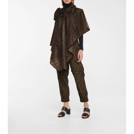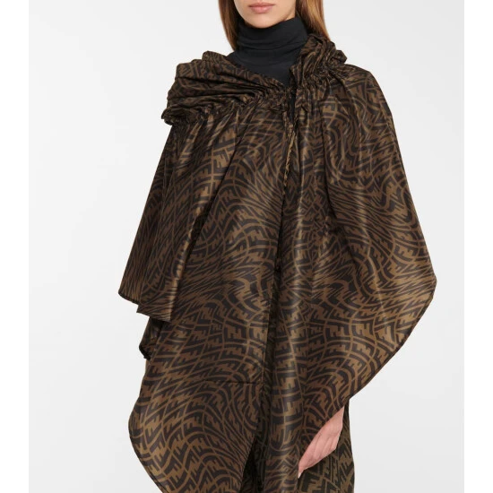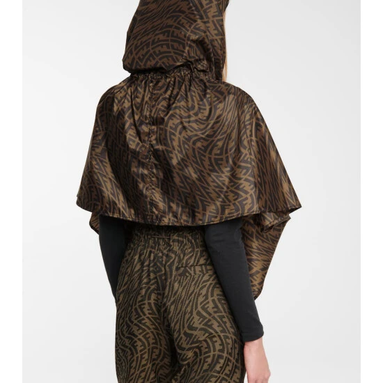 Protecting yourself from sudden downpours can be a luxe affair with the help of this poncho-style rain jacket. Made from water repellent technical nylon, it features a self-tie hood and an asymmetric hem, and is defined by a swirling all-over FF logo print for instant recognition.