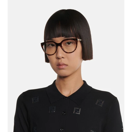 These optical glasses from FENDI arrive in havana brown acetate frames with an all-over FF logo. They are accented by thin gold-tone metal temples with a cutout logo at the hinges. Please note that the color of the carrying case may vary from that in the image.