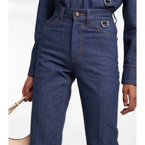 Fendi’s jeans have a stylish wide cut with pressed pleats that run the length of the legs. They’re made from sturdy cotton denim in a high-rise design.