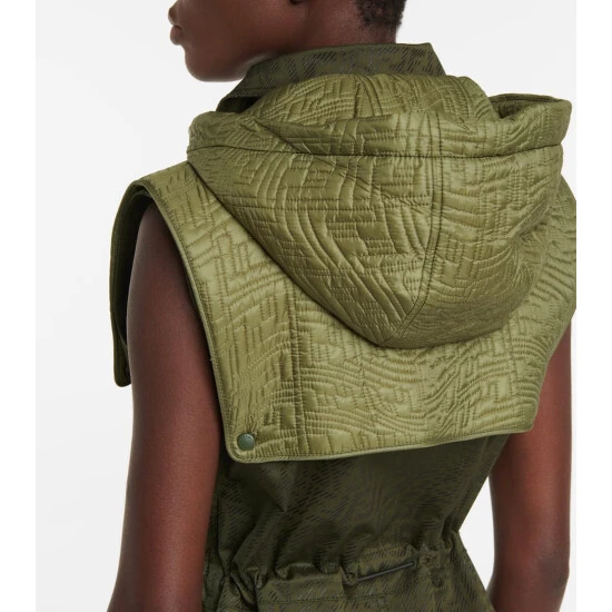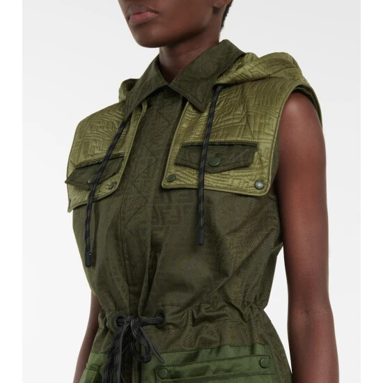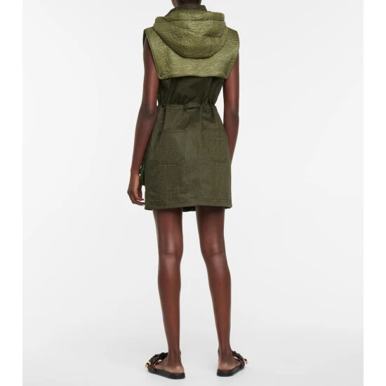 FENDI’s military green minidress is inspired by paratrooper vests. It’s cut from stretch-cotton twill with a PVC coating, making it durable for all types of weather, and fitted with cargo pockets and drawstring toggles. A detachable hood and insulating fill are other practical features.