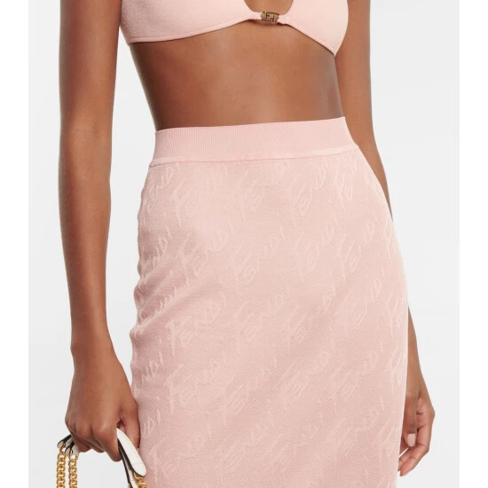 This elegant jacquard midi skirt from Fendi features the label’s Fendi Brush motif. It has a figure-hugging silhouette and is tightly knit from a cotton-blend which ensures a sculpted fit.