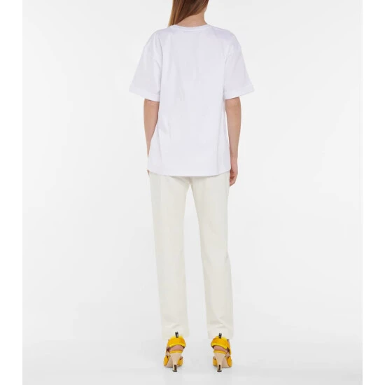 Update your off-duty wardrobe with laid-back styles such as this white T-shirt from Fendi. Made in Italy from cotton jersey, it has a relaxed silhouette with dropped shoulders and features a gold logo print at the chest.
