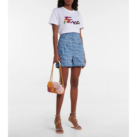 Fendi devotees with flock towards these shorts this summer. Cut from pure cotton with a high rise and cuffed hem, they’re finished with the Fendi Brush logo lettering and zipped pockets.