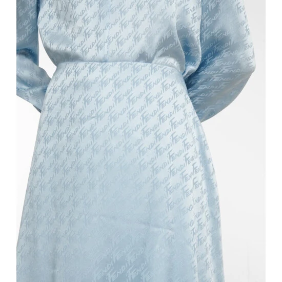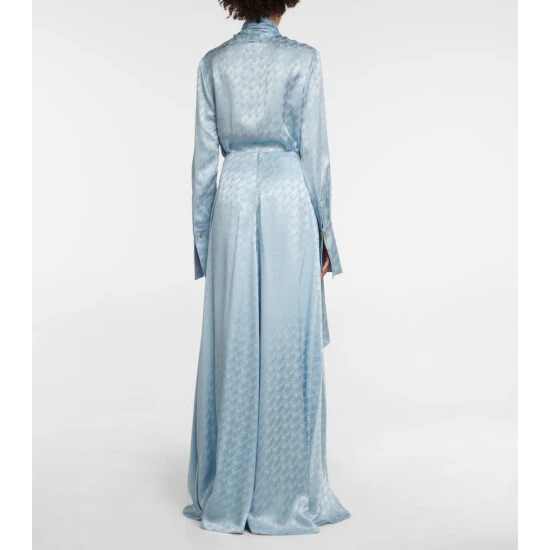 Embrace Fendi’s offering of elegant styles such as these wide-leg pants for the new season. Cut from a logo jacquard silk satin, they have a high rise and a draped skirt that flows to a maxi-length at the back.