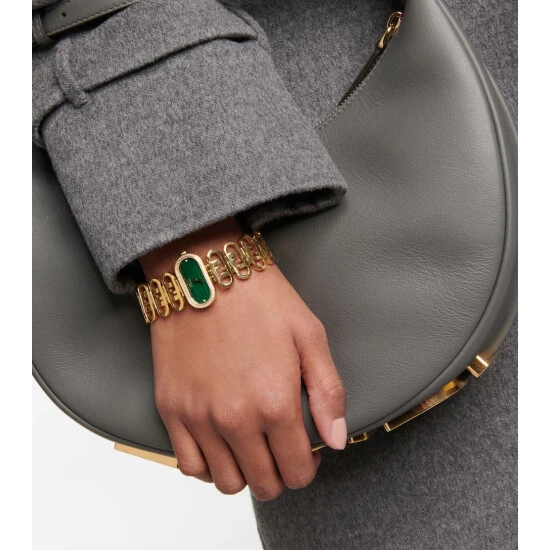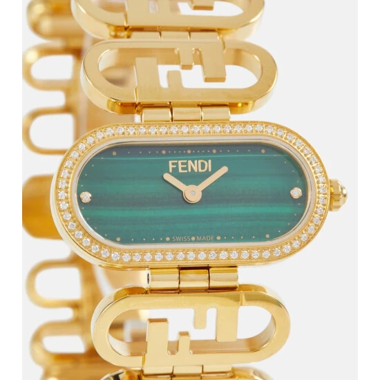 Embellished with 0.18ct diamonds around its face, this watch from Fendi secures with a clasp fastening and has a metal bracelet featuring the the label’s O’Lock links.