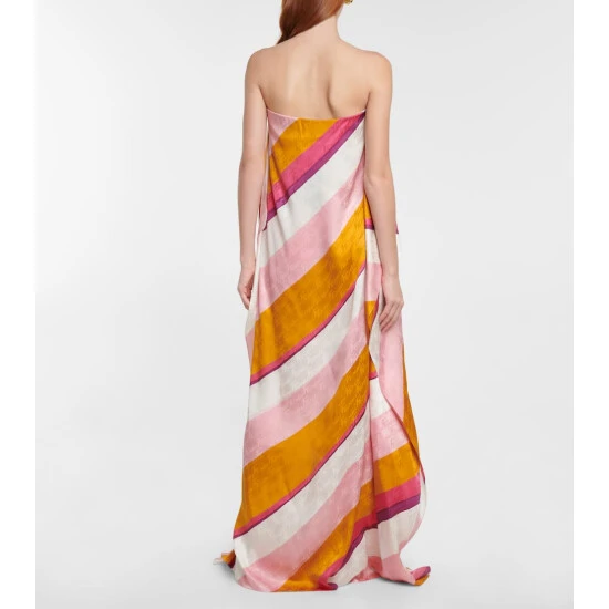 Opt for a voluminous silhouette in the form of this maxi dress from Fendi. An off-shoulder design, it’s made from striped silk with tonal logo branding.
