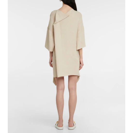This minidress from Fendi embodies modern elegance with its tunic style silhouette and draped front panels. Made from silk cady, it features a graphic paintbrush print in tribute to fashion illustrator Antonio Lopez.