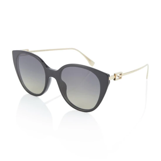 Fendi reinterprets cat-eye sunglasses with a larger and rounded frame. The pair features polarized lenses that fade from a smoke grey to almost transparent.