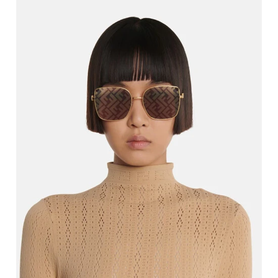 In an oversized square-frame, these gold-tone FENDI sunglasses have thin metal temples, a cutout logo at the hinges and mirrored FF lenses in brown. Please note that the color of the carrying case may vary from that in the image.