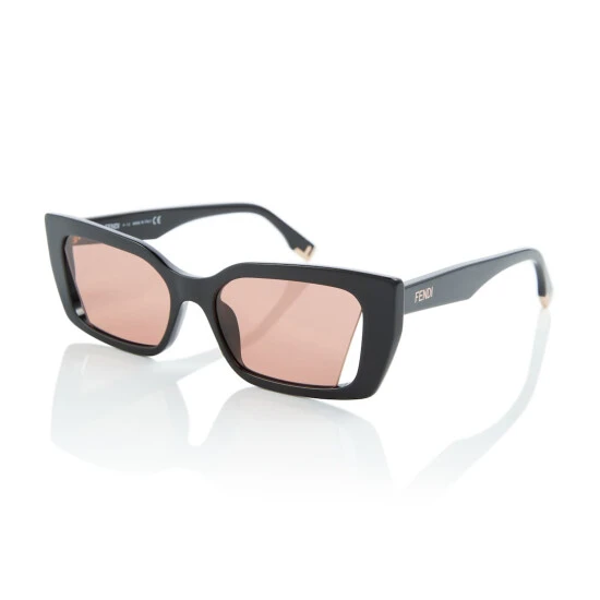 The Fendi Way sunglasses share the angular lines of the signature Fendi bag for which they’re named. They’re made from shiny black acetate with peaked rectangular frames and gray lenses that are cut out at the edges.