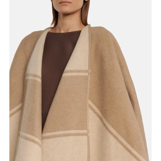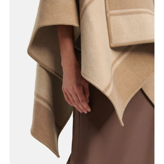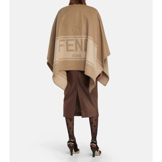 This poncho from FENDI is made from a blend of wool and cashmere in beige. A draped style, it has a striped print and an asymmetric hem.